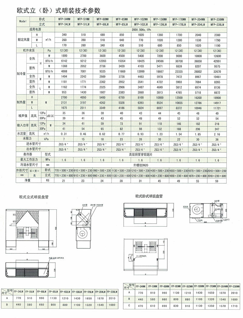 4,機組停用季節(jié)中,夏天需保持盤管內(nèi)充滿水以減少銹蝕;冬天如若不使用必須將水排放干凈以免凍裂銅管。