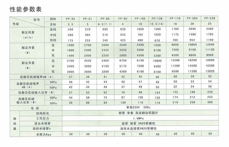 每臺盤管換熱器都經過壓力試驗;進出水接管(集水頭)采用鍛黃銅結構,可靠耐用;凝水盤噴塑處理,不生銹;保溫材料系防火型;電動機采用超低噪聲軸承,無需用戶加油維護,使用壽命可達35000小時;電動機細長軸經特殊處理無銹蝕。